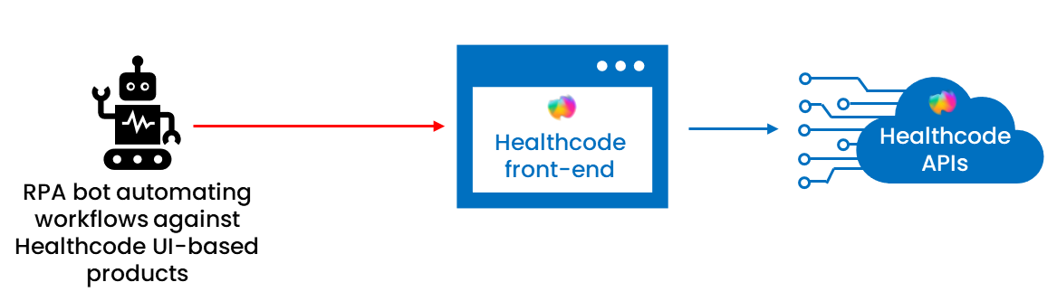 This section focuses on scenarios where an RPA bot connects to Healthcode through APIs without interacting with any Healthcode user interfaces. If your automation needs to work directly with the Healthcode UI, please refer to the next section for guidance on that specific case.